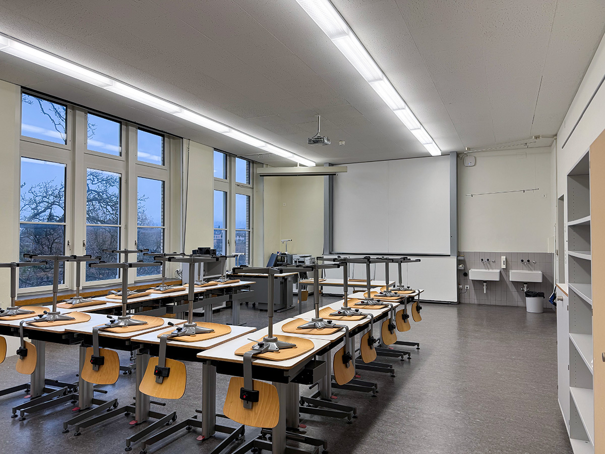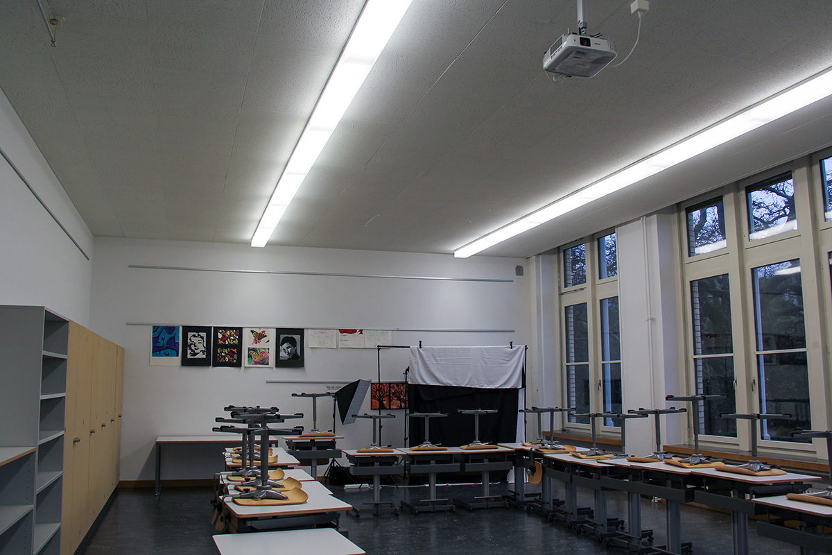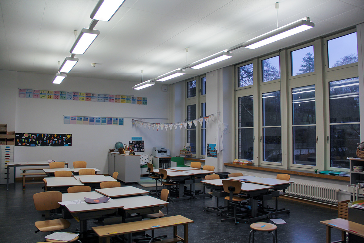 Im Zuge einer sanften Modernisierung durften wir die bestehende Beleuchtung in den Schulzimmern mit moderner LED-Technik ausstatten, ohne den ursprünglichen Charakter des Gebäudes zu verändern.