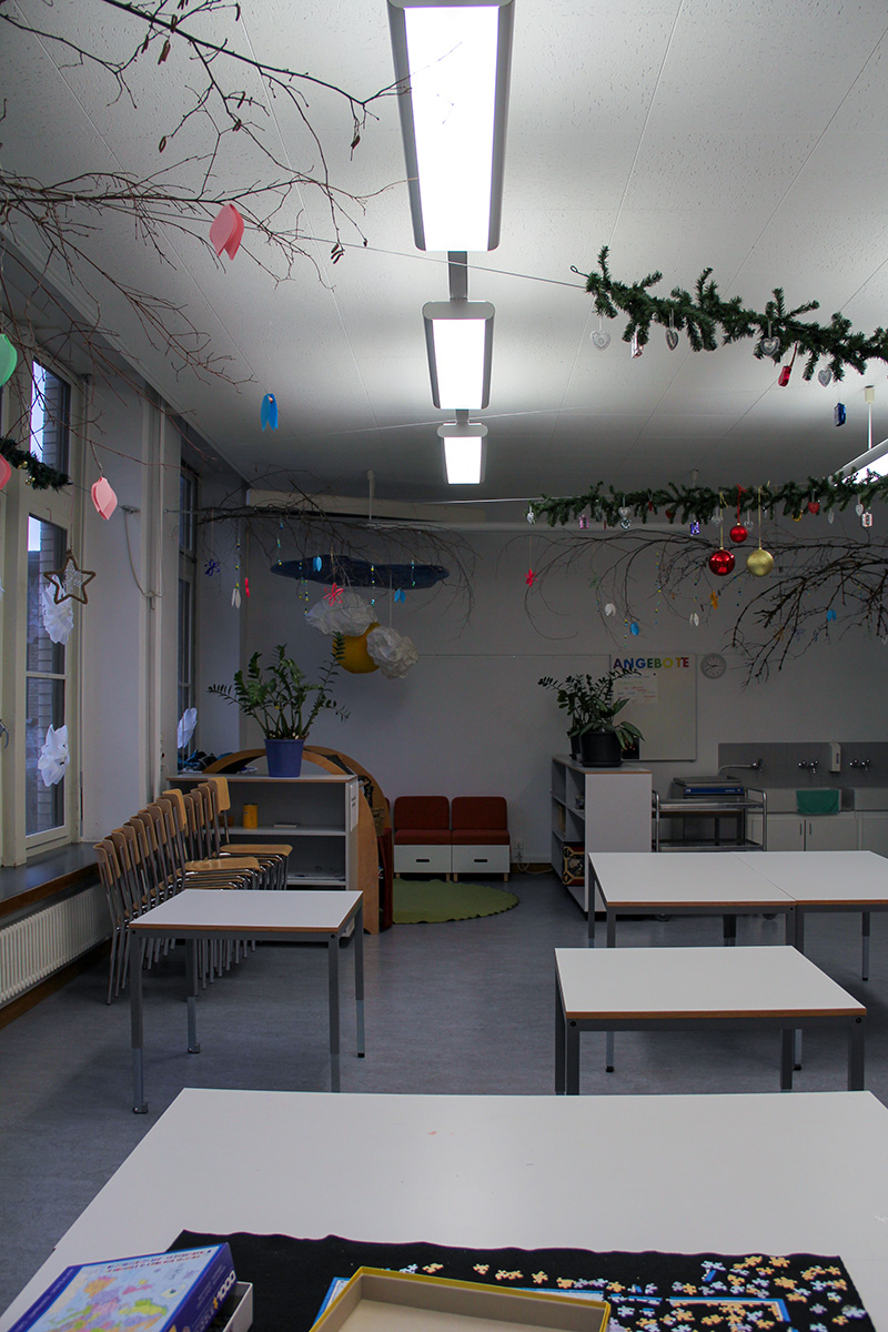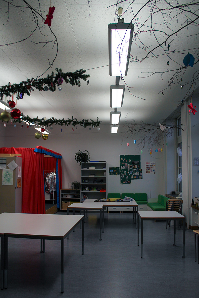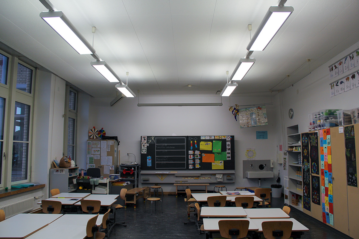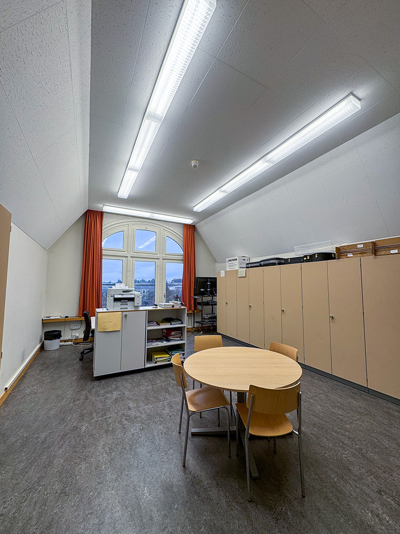 Im Zuge einer sanften Modernisierung durften wir die bestehende Beleuchtung in den Schulzimmern mit moderner LED-Technik ausstatten, ohne den ursprünglichen Charakter des Gebäudes zu verändern.