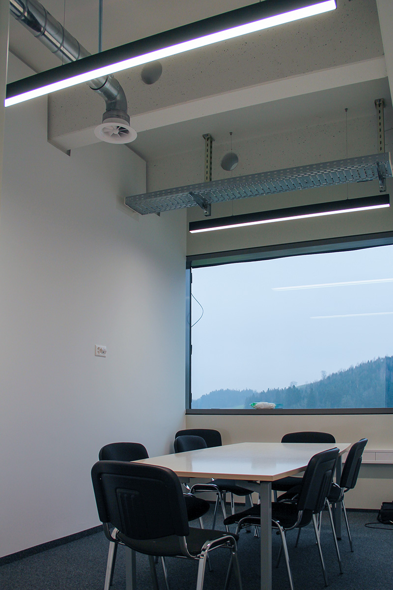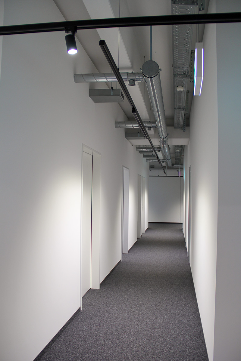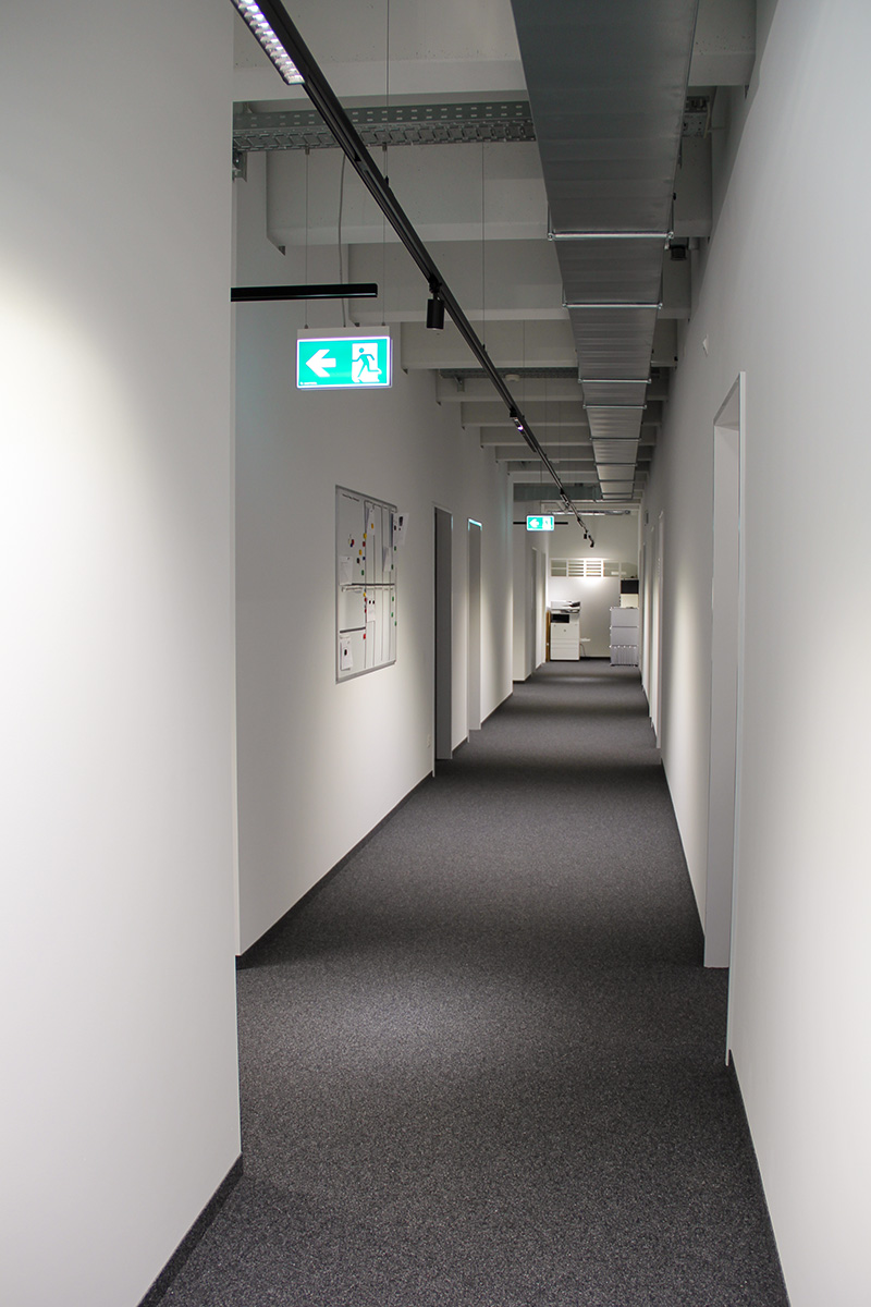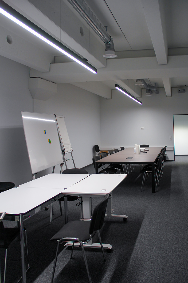 Wir wurden vom ausführenden Elektriker beigezogen, um ein durchdachtes Beleuchtungskonzept zu entwickeln, das eine angenehme Atmosphäre schafft und gleichzeitig funktionale Anforderungen erfüllt. In den Büros und Sitzungszimmern sorgen neutrale Linearleuchten für optimale Lichtverhältnisse und unterstützen eine produktive Arbeitsumgebung. In den Korridoren setzen wir auf Stromschienen, die perfekt zur Umgebung passen und maximale Flexibilität bieten – beispielsweise mit ausrichtbaren Spots in der Druckerecke, die gezielt für Akzente sorgen.
